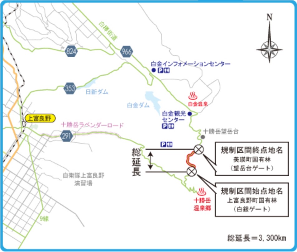 『道道966号十勝岳温泉美瑛線(上富良野町国有林(白銀ゲート)から上富良野町国有林(望岳台ゲート)の間3.3Km)』が令和7年10月20日(月)午前11時より冬季間は通行止めとなります。